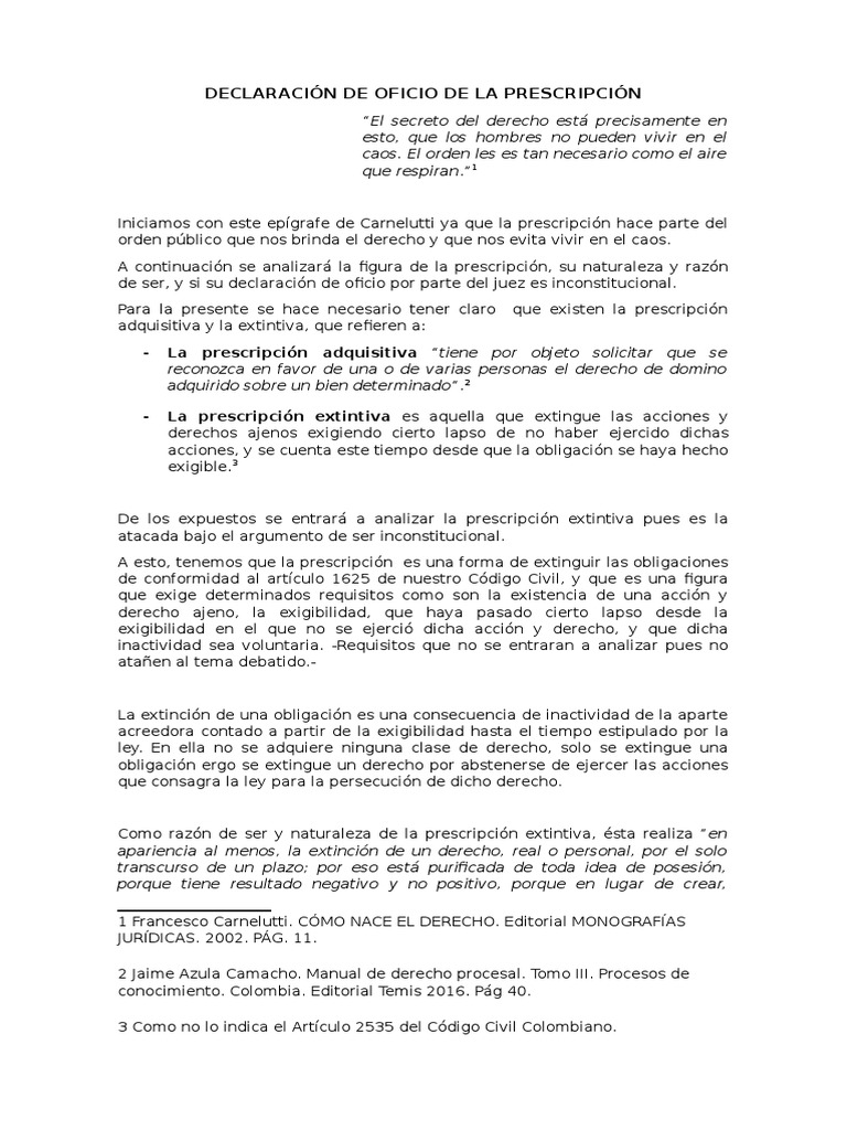 Iniciamos con este epgrafe de Carnelutti ya que la prescripcin hace parte del