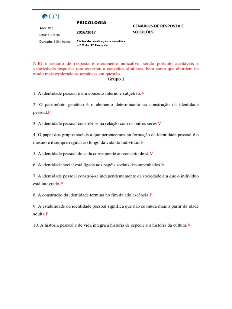 1. A identidade pessoal um conceito interno e subjetivo.V