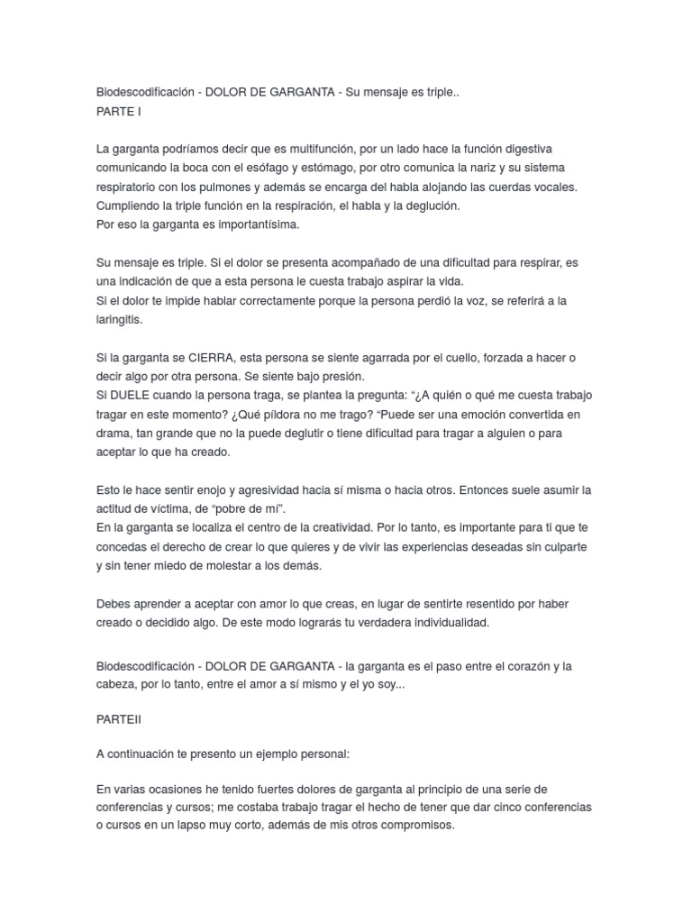 Biodescodificacin - DOLOR DE GARGANTA - Su mensaje es triple..