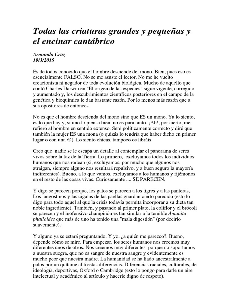 creacionista ni negador de toda evolucin biolgica. Mucho de aquello que