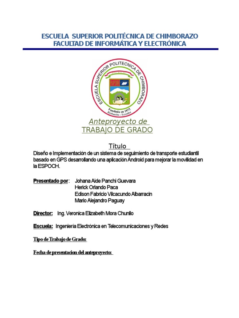 El anteproyecto de Grado ser aplicado en la Escuela Superior Politcnica de