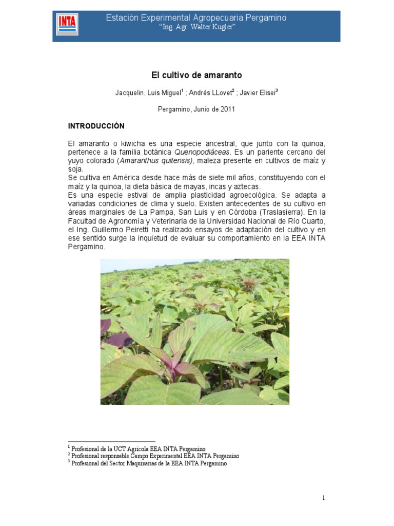 Peiretti, Guillermo. Documento: Amaranto. Potencialidades de un cultivo