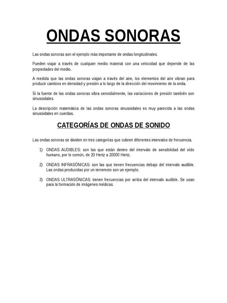 1) ONDAS AUDIBLES: son las que estn dentro del intervalo de sensibilidad del odo