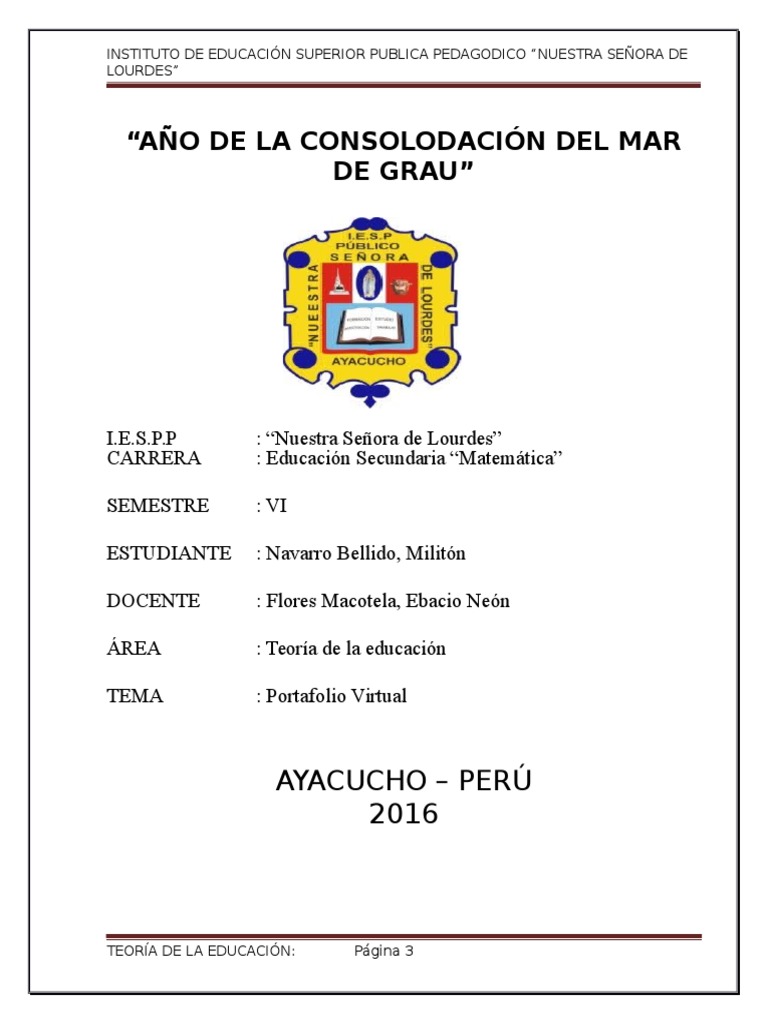 INSTITUTO DE EDUCACIN SUPERIOR PUBLICA PEDAGODICO NUESTRA SEORA DE