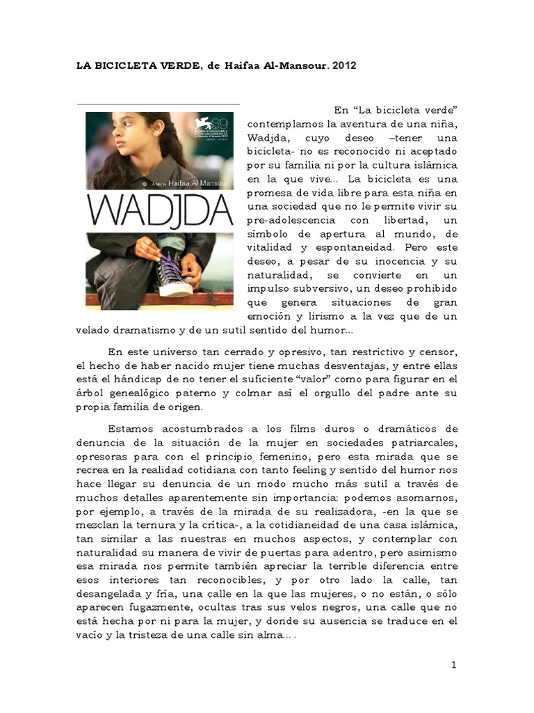 canaliza a travs del deseo de la bicicleta verde, tan en contra de los