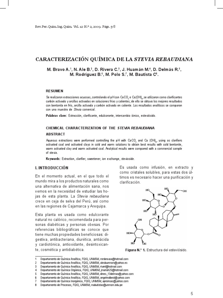 Rev. Per. Quím. Ing. Quím. Vol. 12 N.º 2, 2009. Págs. 5-8