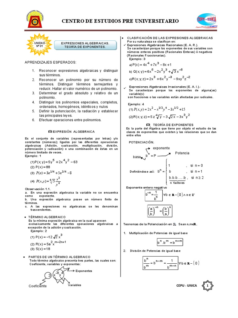 Expresiones Algebraicas Irracionales (E. A. I.).Se caracterizan porque los exponentes de alguna(as)