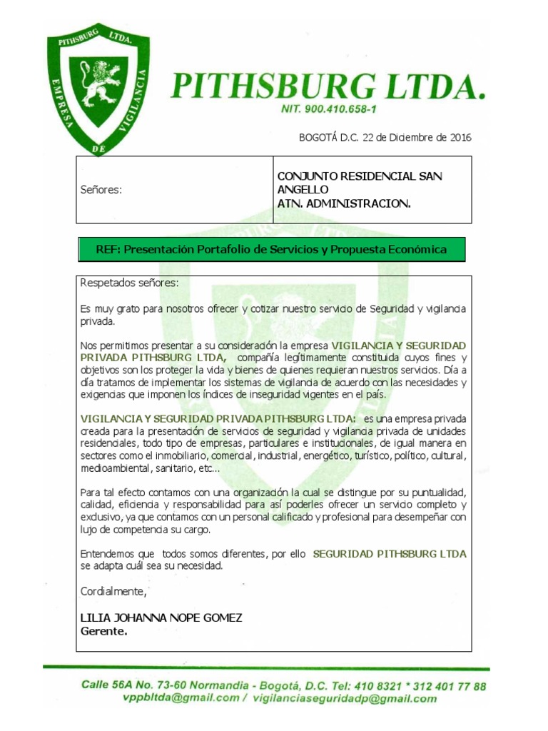 Nos permitimos presentar a su consideracin la empresa VIGILANCIA Y SEGURIDAD