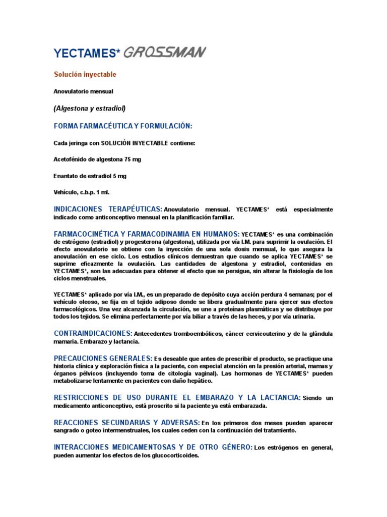 anovulacin en ese ciclo. Los estudios clnicos demuestran que cuando se aplica YECTAMES* se