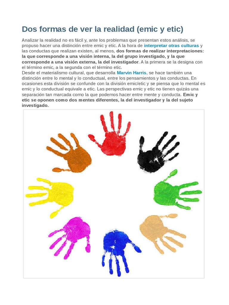 Las interpretaciones de la realidad desde una perspectiva etic no son fciles de