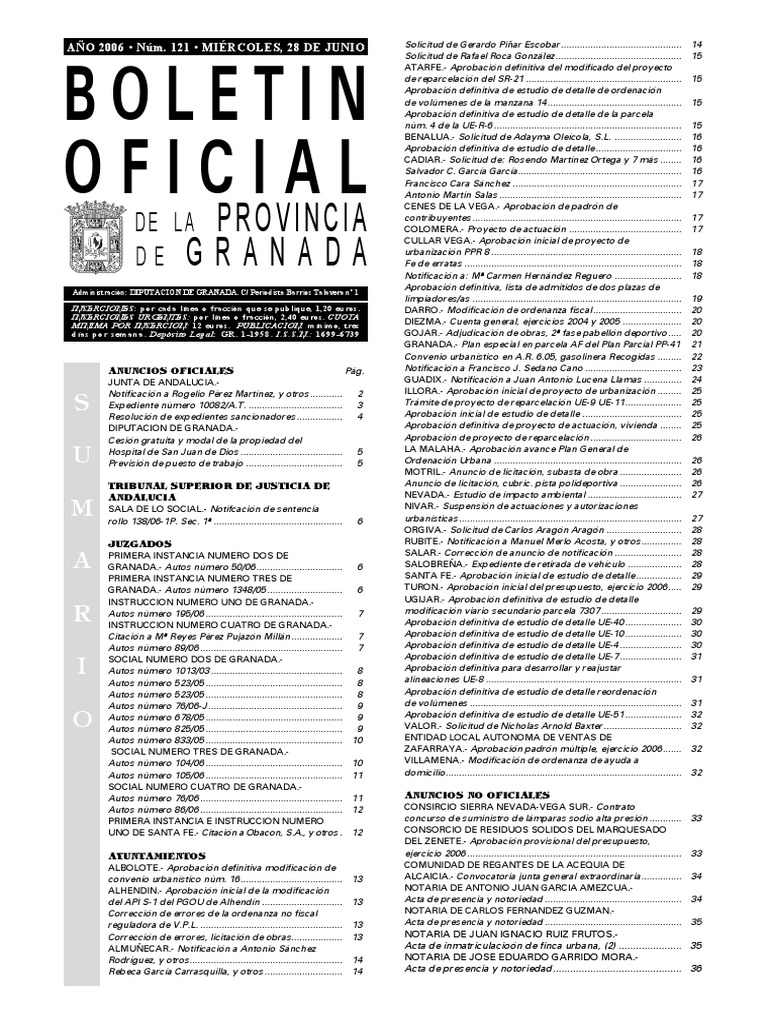 Administracin: DIPUTACION DE GRANADA. C/ Periodista Barrios Talavera n 1