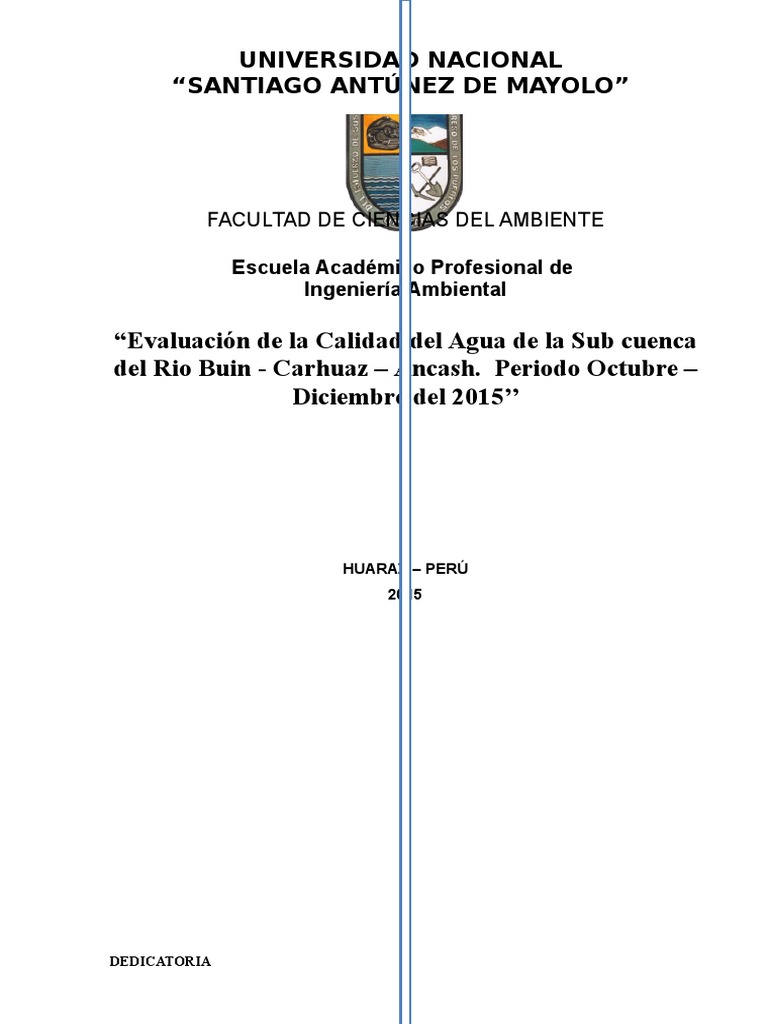 Evaluar la calidad de agua de la sub cuenca del rio Buin Carhuaz.
