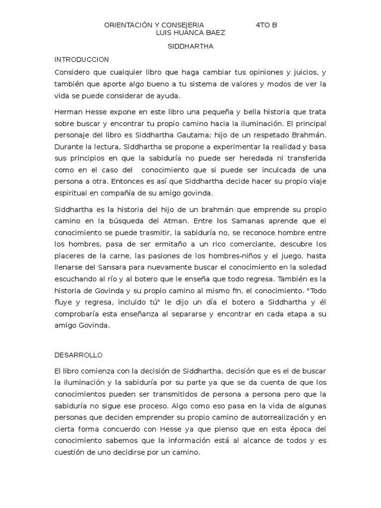 El libro comienza con la decisin de Siddhartha, decisin que es el de buscar