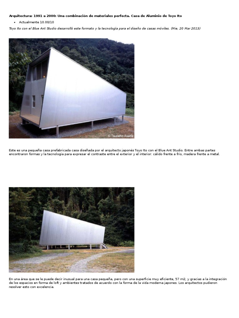 Este es una pequea casa prefabricada casa diseada por el arquitecto japons Toyo Ito con el Blue Ant Studio. Entre ambas partes