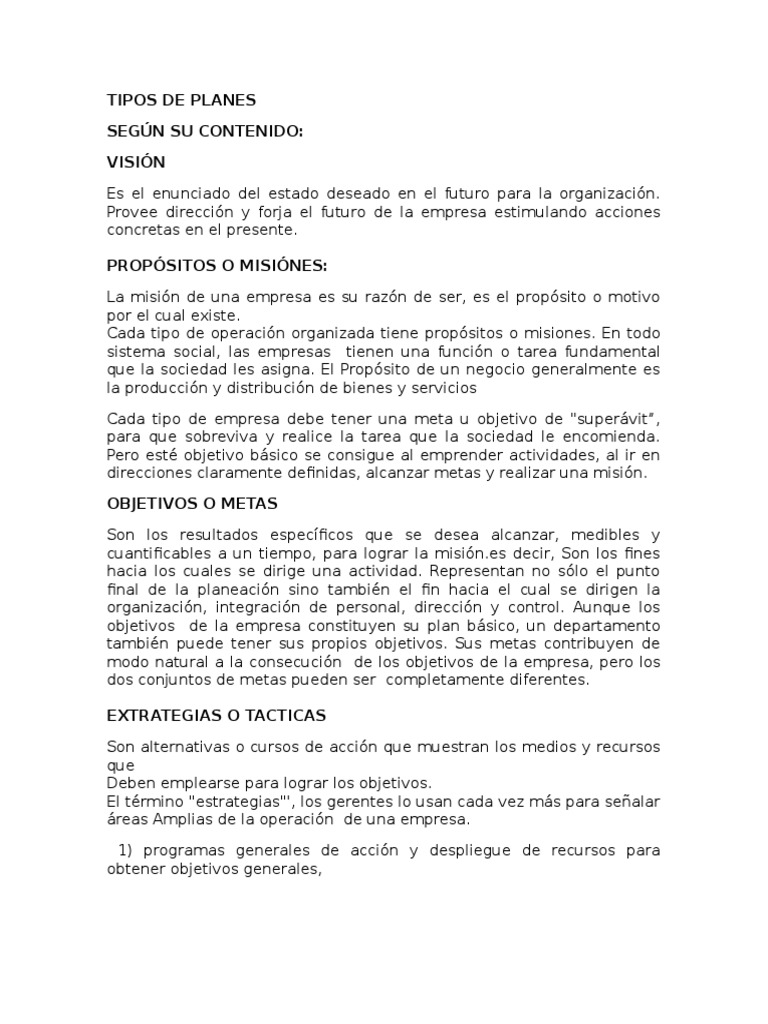 objetivos de la empresa constituyen su plan bsico, un departamento