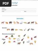Este documento parece ser un registro de respuestas para una prueba de animales realizada por un examinador. Contiene secciones para el nombre del examinado, fecha de examen y edad. También incluye una sección de práctica y preguntas numeradas de 1 a 10 para completar.
