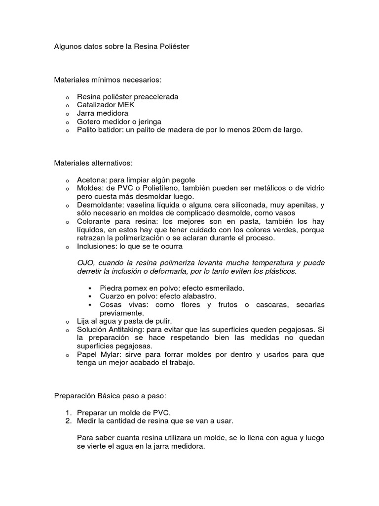 Algunos datos sobre la Resina Polister