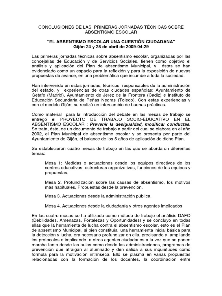 Las primeras jornadas tcnicas sobre absentismo escolar, organizadas por las