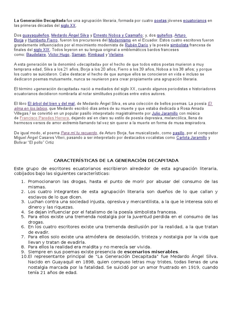 [Link] representante principal de La Generacin Decapitada fue Medardo ngel Silva.