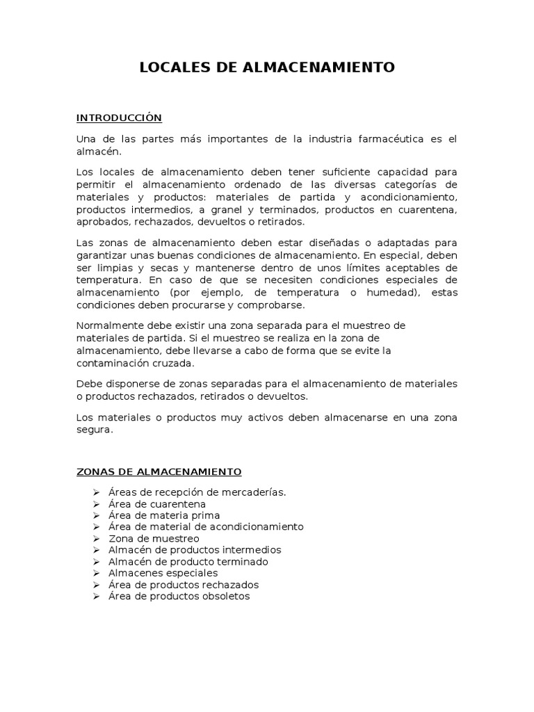 Las zonas de almacenamiento deben estar diseadas o adaptadas para