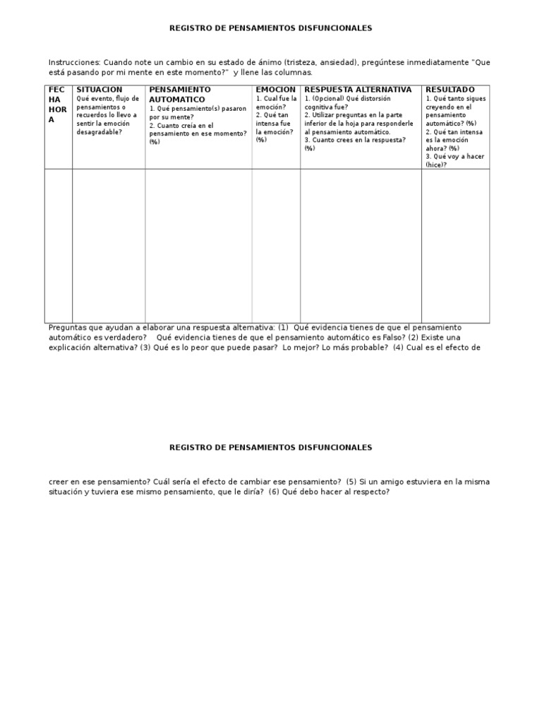 REGISTRO DE PENSAMIENTOS DISFUNCIONALES