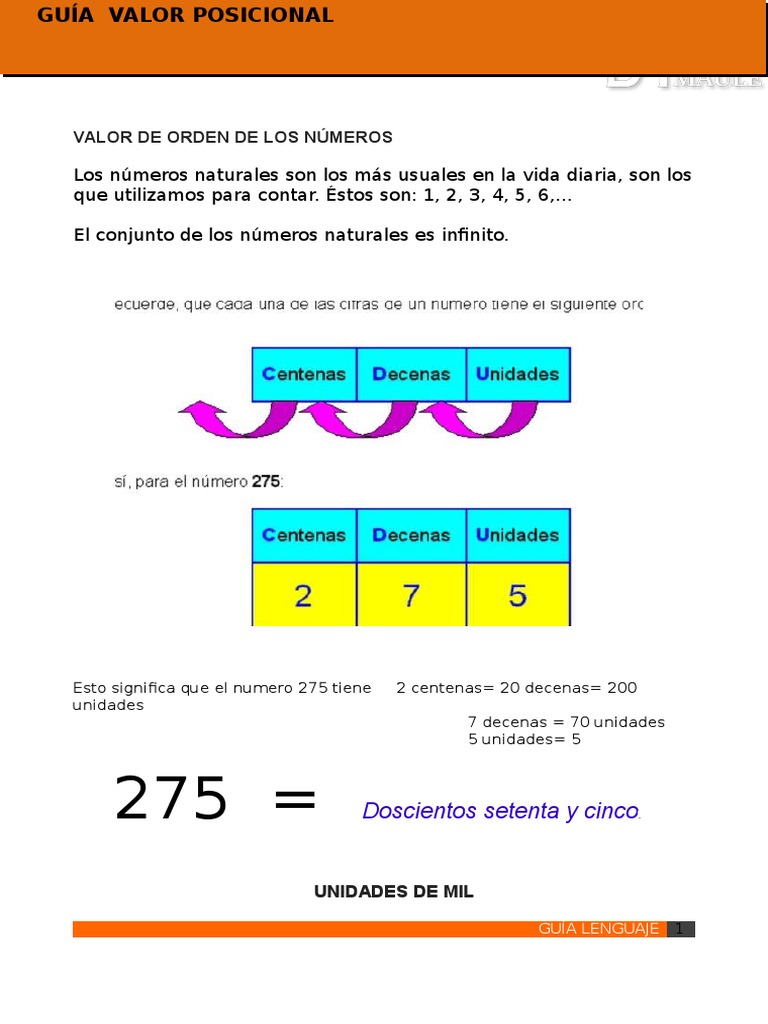 VALOR DE ORDEN DE LOS NMEROS