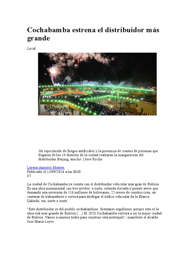 obra vial ms grande de Bolivia () El 2020 Cochabamba volver a ser la mejor ciudad