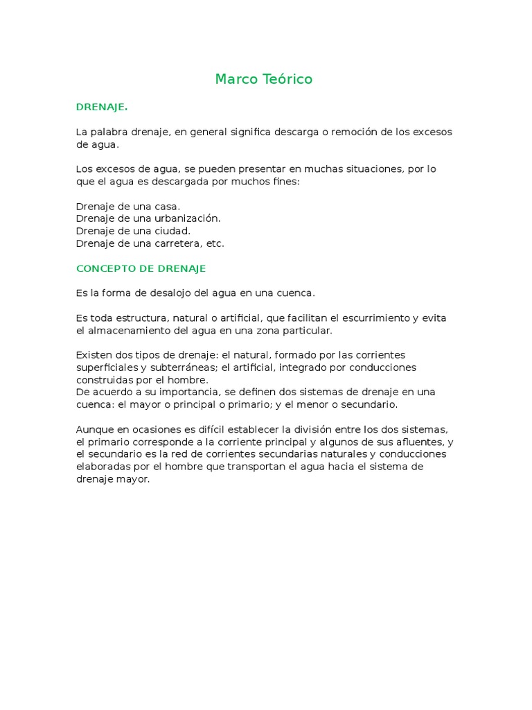 La palabra drenaje, en general significa descarga o remocin de los excesos