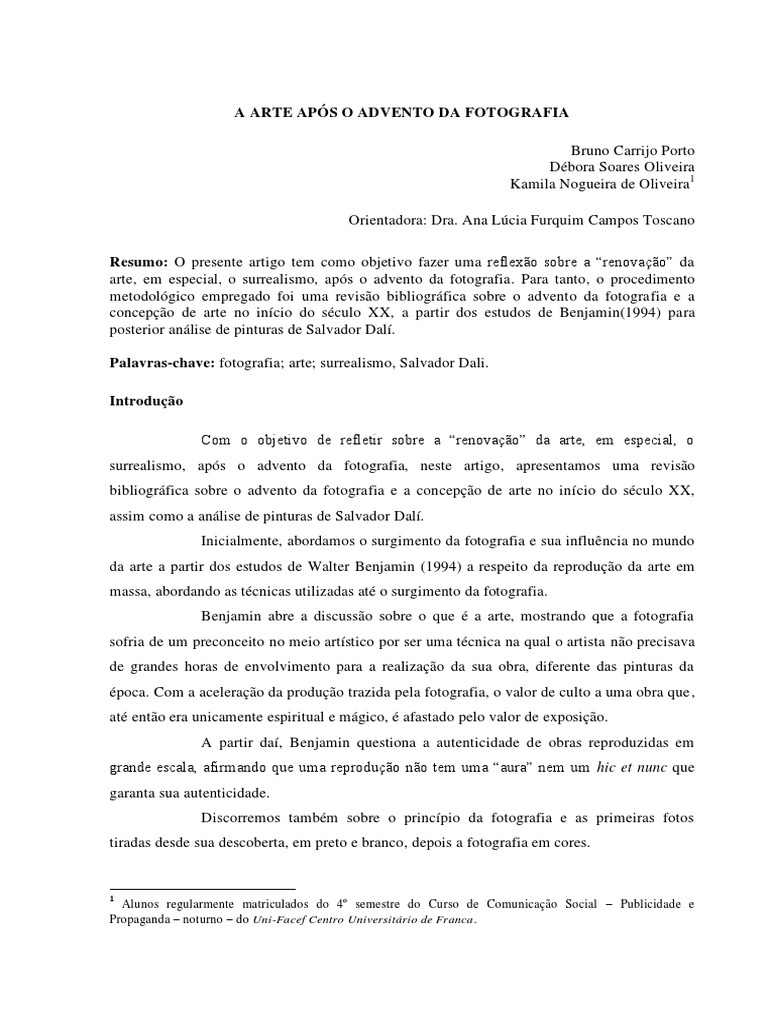 surrealismo, aps o advento da fotografia, neste artigo, apresentamos uma reviso
