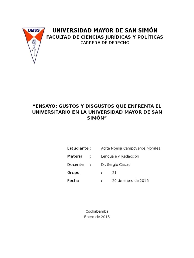 GUSTOS Y DISGUSTOS EN LA UNIVERSIDAD MAYOR DE SAN SIMN