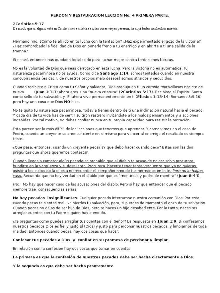 PERDON Y RESTAURACION LECCION No. 4 SEGUNDA PARTE.