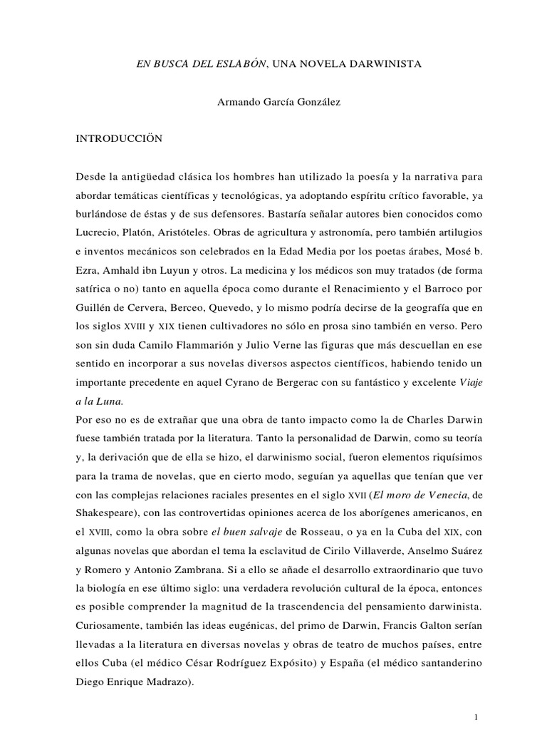 fuese tambin tratada por la literatura. Tanto la personalidad de Darwin, como su teora