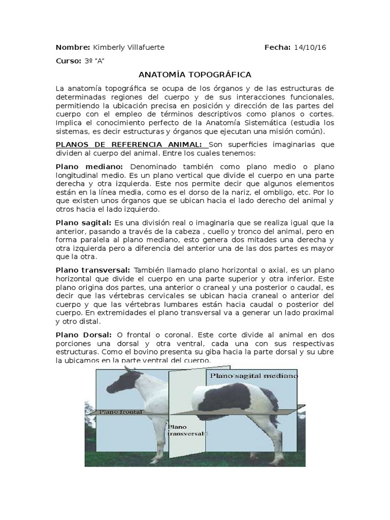 Plano Dorsal: O frontal o coronal. Este corte divide al animal en dos
