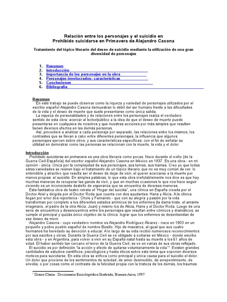 Si nos extendemos un poco ms sobre el ttulo podremos ver que Prohibido suicidarse en primavera,
