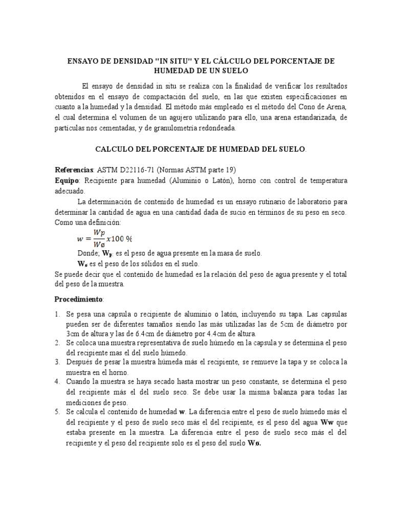 Calcular la densidad hmeda in situ.