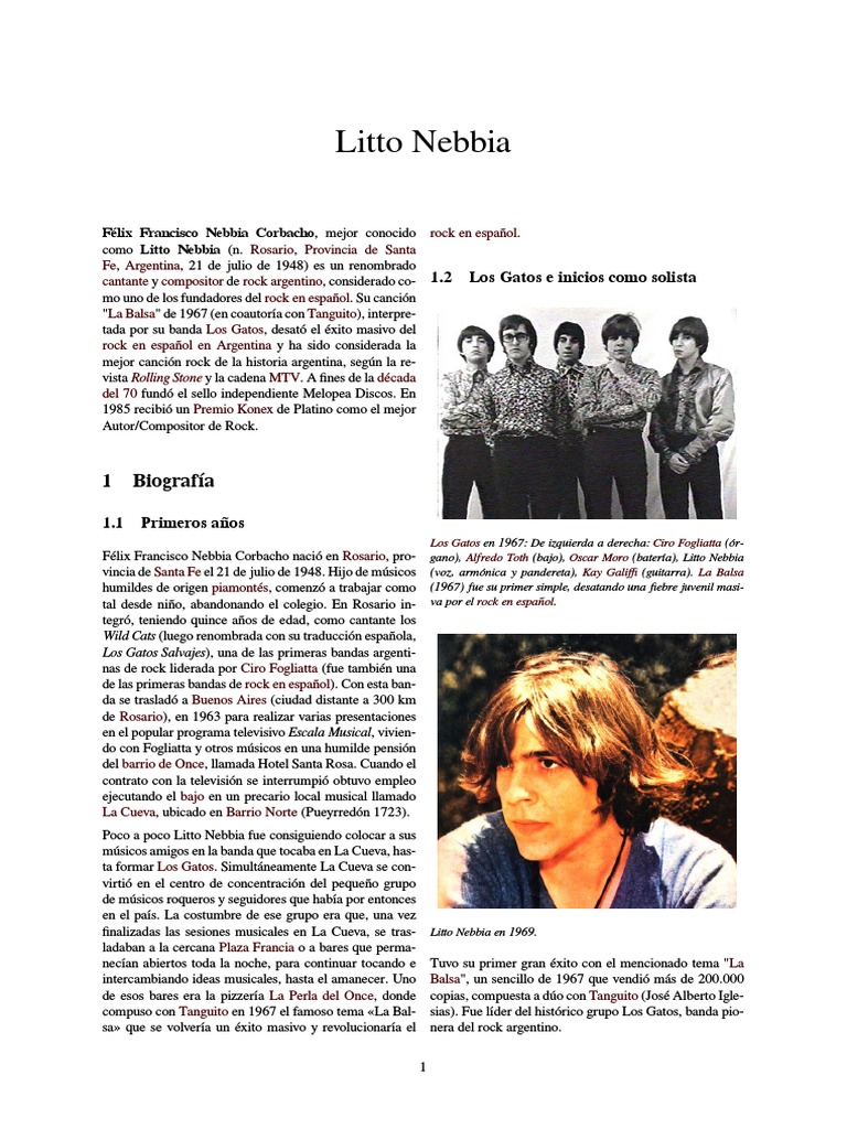 Flix Francisco Nebbia Corbacho naci en Rosario, pro- gano), Alfredo Toth (bajo), Oscar Moro (batera), Litto Nebbia