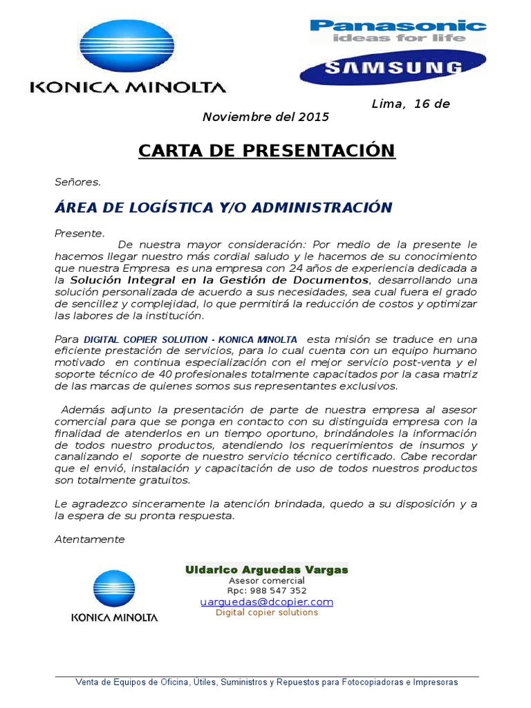 comercial para que se ponga en contacto con su distinguida empresa con la