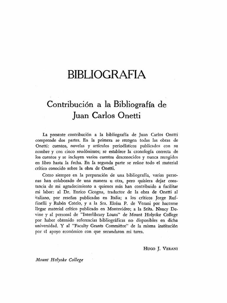 La presente contribuci6n a la bibliografia de Juan Carlos Onetti