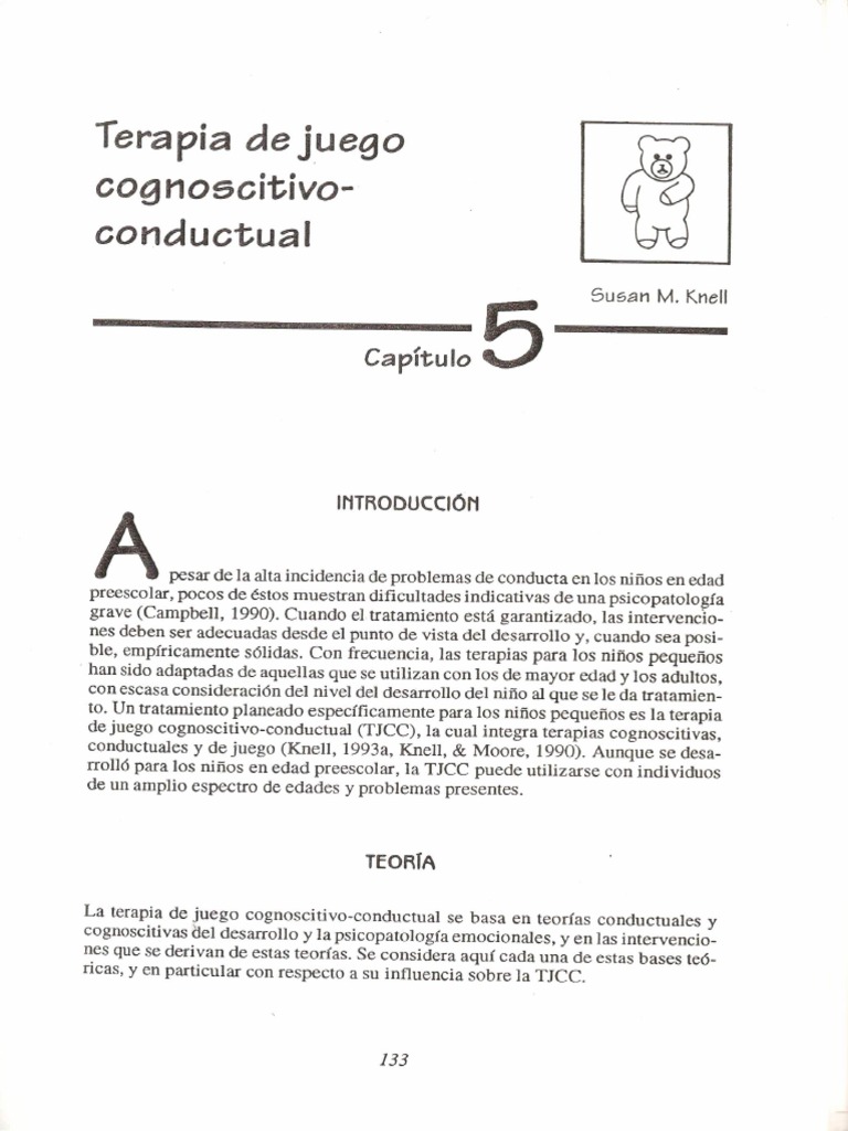 3 adaptaciones a partir de las intervenciones con adultos. No obstante, éstas, enTerapia de juego cognoscitivo-conductual W135