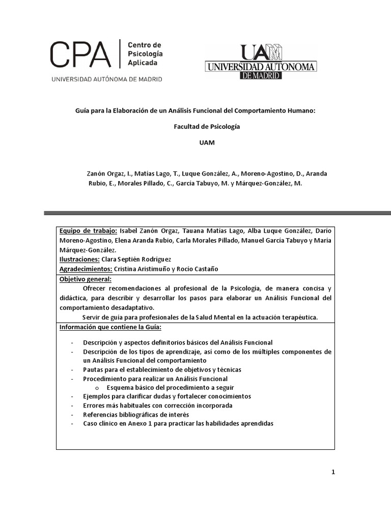 El Anlisis Funcional (en adelante AF) es la herramienta clnica bsica de toda terapia