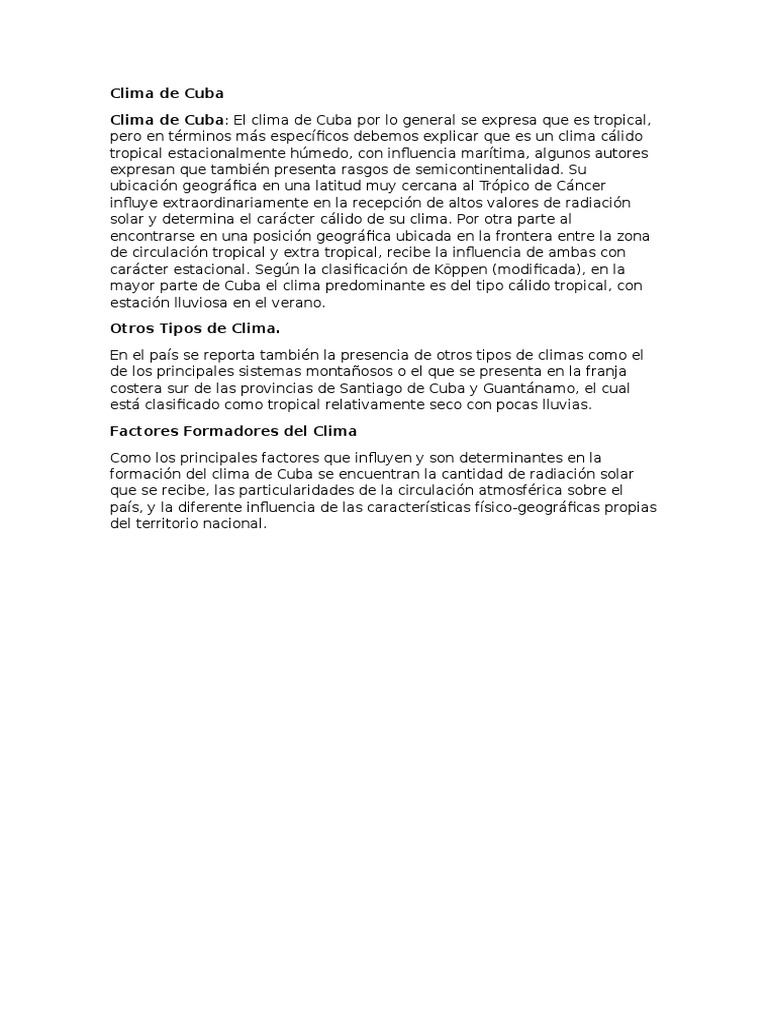Clima de Cuba: El clima de Cuba por lo general se expresa que es tropical,