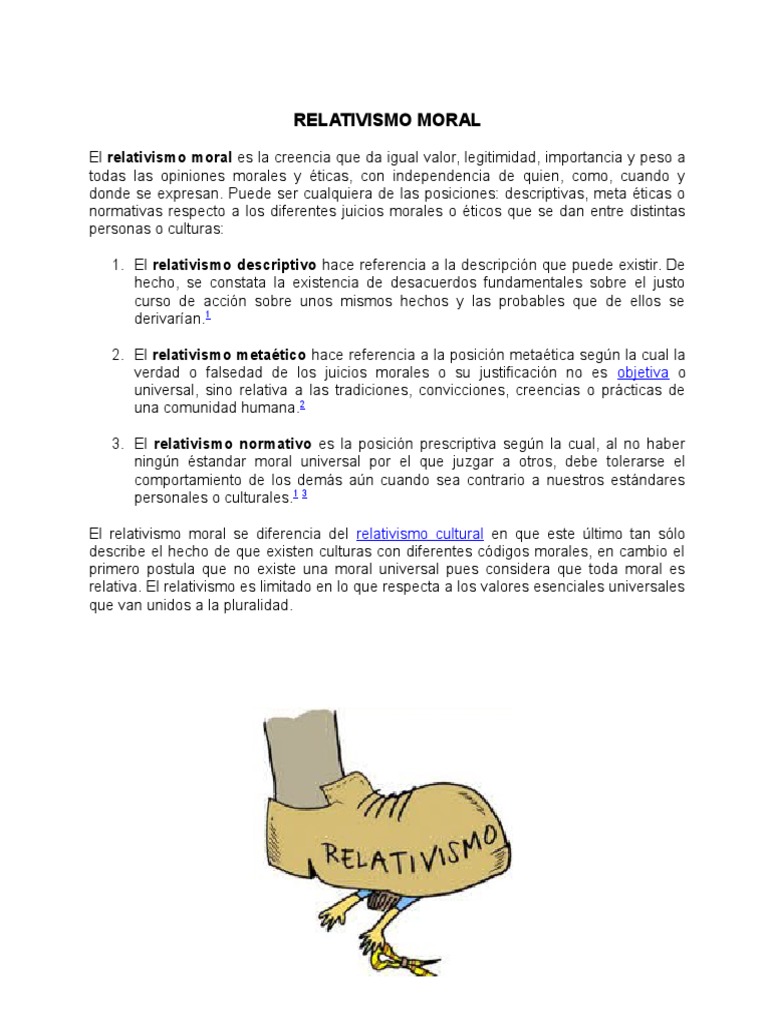 relativa. El relativismo es limitado en lo que respecta a los valores esenciales universales