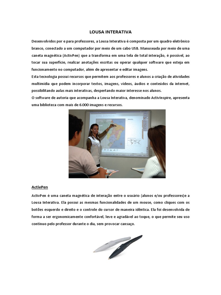 Desenvolvidos por e para professores, a Lousa Interativa composta por um quadro eletrnico