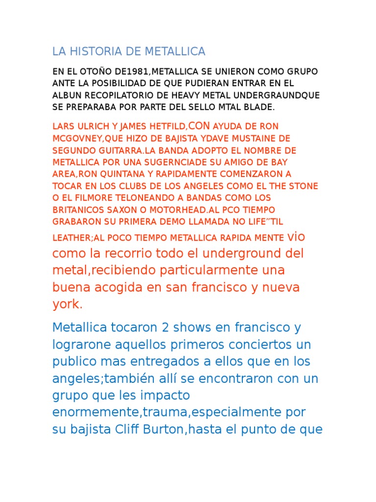 cotinuo de la manera que lo haca metallica,tocando
