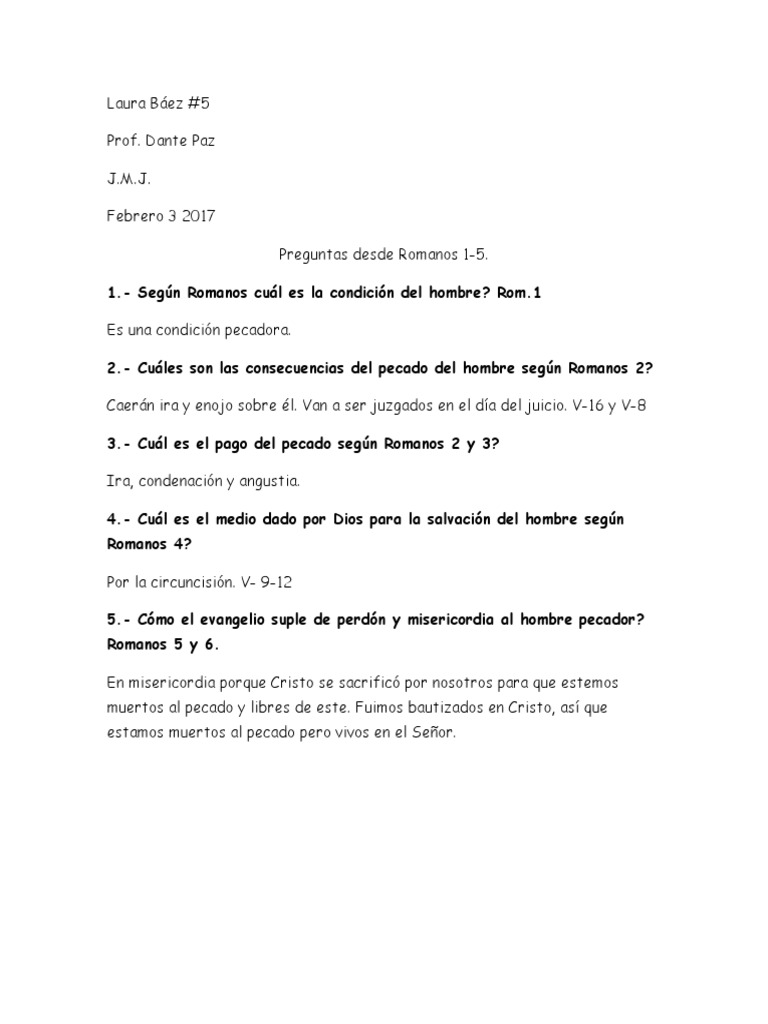 1.- Segn Romanos cul es la condicin del hombre? Rom.1