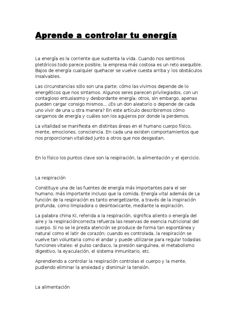La energa es la corriente que sustenta la vida. Cuando nos sentimos