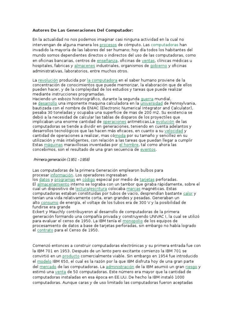 Autores De Las Generaciones Del Computador: