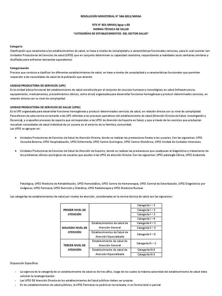 RESOLUCIN MINISTERIAL N 546-2011/MINSA
