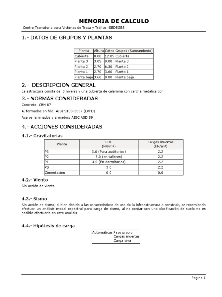 Sin accin de sismo, si bien debido a las caractersticas de uso de la infraestructura a construir, se recomienda