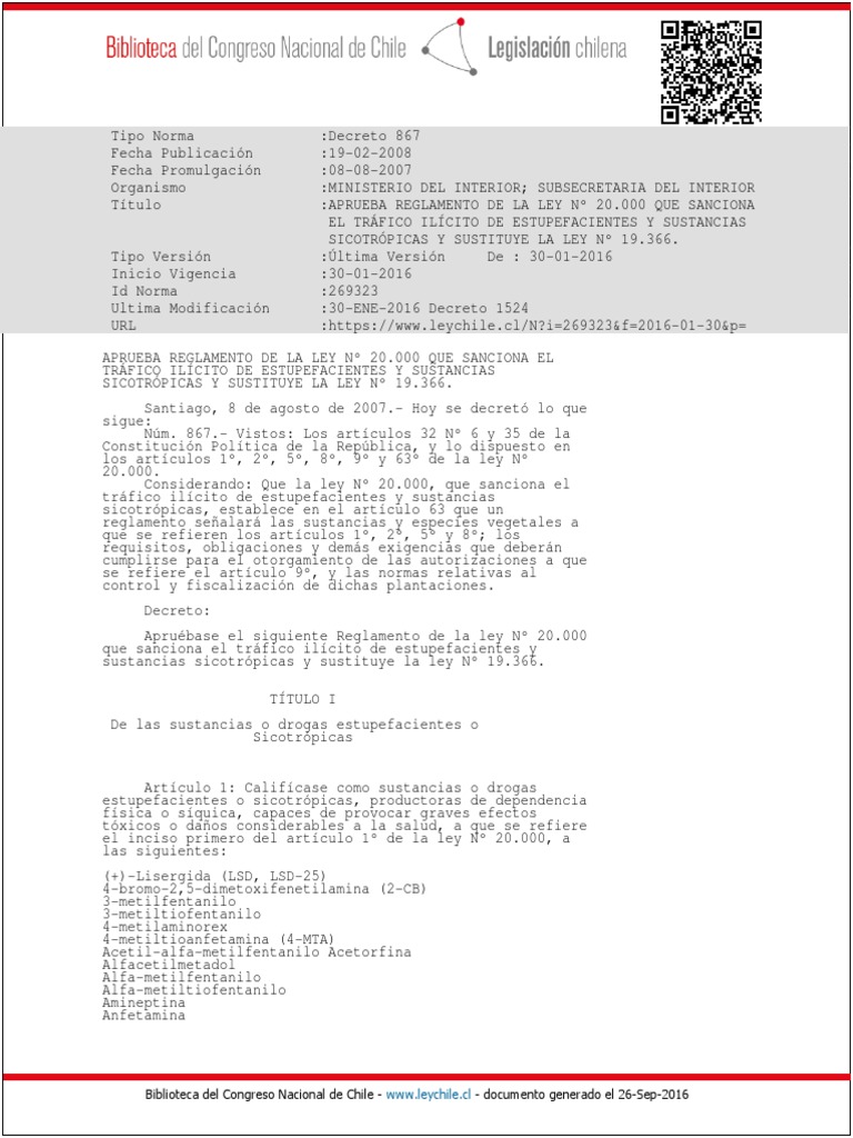 el Reglamento de la ley N 19.366.